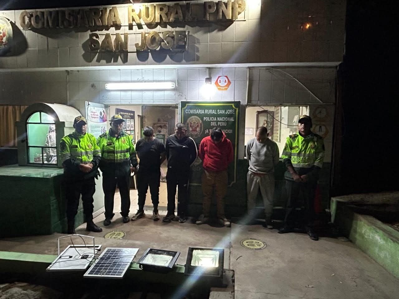 En una intervención ejecutada por el personal policial de la Comisaría PNP San José, al mando del Alférez PNP Edinson Alberto Navarro Vislao, se desarticuló la presunta banda criminal denominada “Los Audaces Iluminarios de San José”, conformada por cuatro personas, presuntamente implicadas en el delito contra el patrimonio en la modalidad de hurto agravado.
