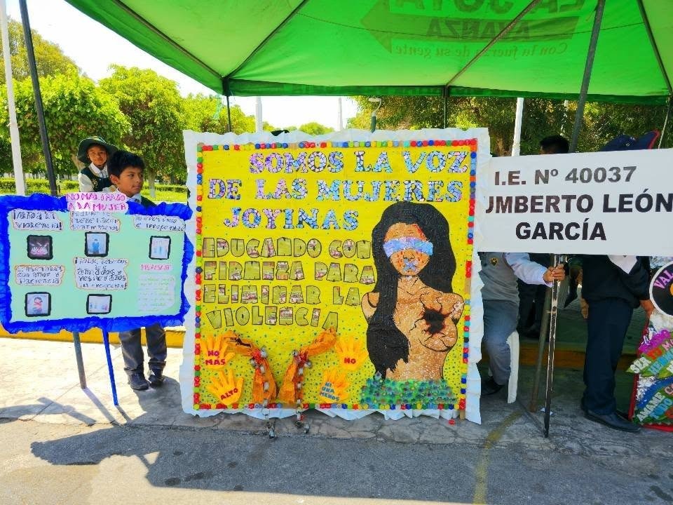 Se destacó la participación de la comunidad educativa y la importancia de promover actividades que refuercen el mensaje de prevención y erradicación de la violencia en La Joya, distrito que tiene grandes índices de violencia en todos sus tipos.