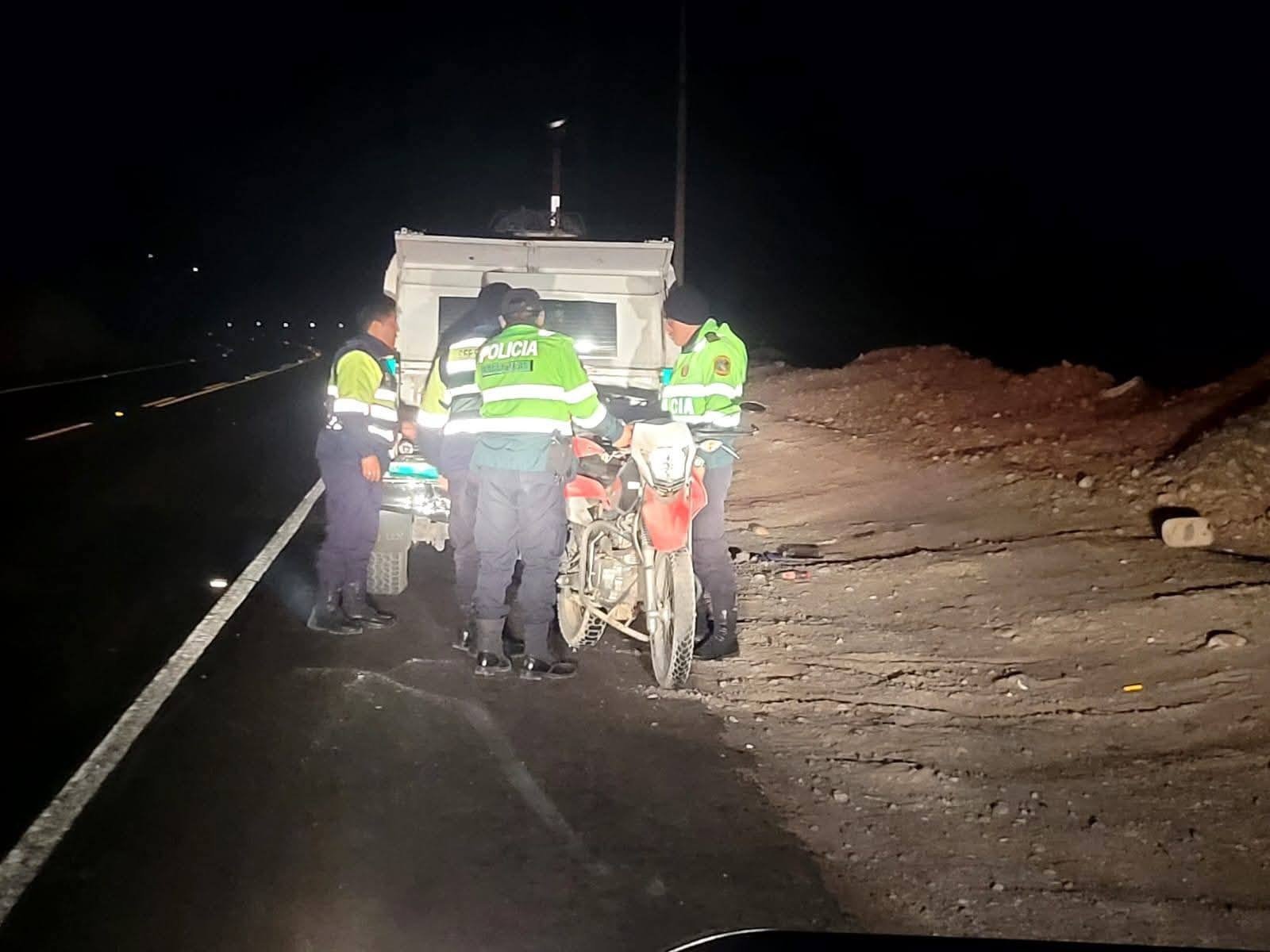 Al llegar al kilómetro 959, los serenos hallaron una motocicleta Honda roja, con placa 9138-NA, recostada a un costado de la vía en el carril con dirección Vítor–Cruce La Joya. Durante la búsqueda inicial no ubicaron al conductor, presumiéndose que el Sistema de Atención Móvil de Urgencia (SAMU) lo habría auxiliado previamente y trasladado al centro de salud más cercano.